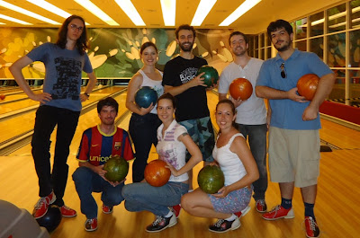 Essa semana, dois times muito inusitados foram jogar boliche no Barra Shopping. Os 8 integrantes da foto foram os galhos-fortes que encararam a chuva e honraram a palavra para se unir na noite de terça. O jogo em si foi tosco: pode-se dizer que eu mais errei do que acertei e pouca gente ali teve rendimento superior a 50%... as pistas são boas, mas não posso dizer o mesmo do atendimento. Apesar do sapatinho fedorento e da dor no corpo colossal do dia seguinte (siiim, jogar boliche é pior que academia!), valeu muito a pena pois nos divertimos muito :)